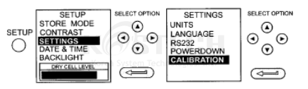4. 아래 그림과 같이 교정절차에 들어가기 위해 DPI 610 상단의 SETUP 버튼을 누르고 차례로 SETTINGS 를 선택하고 CALIBRATION을
